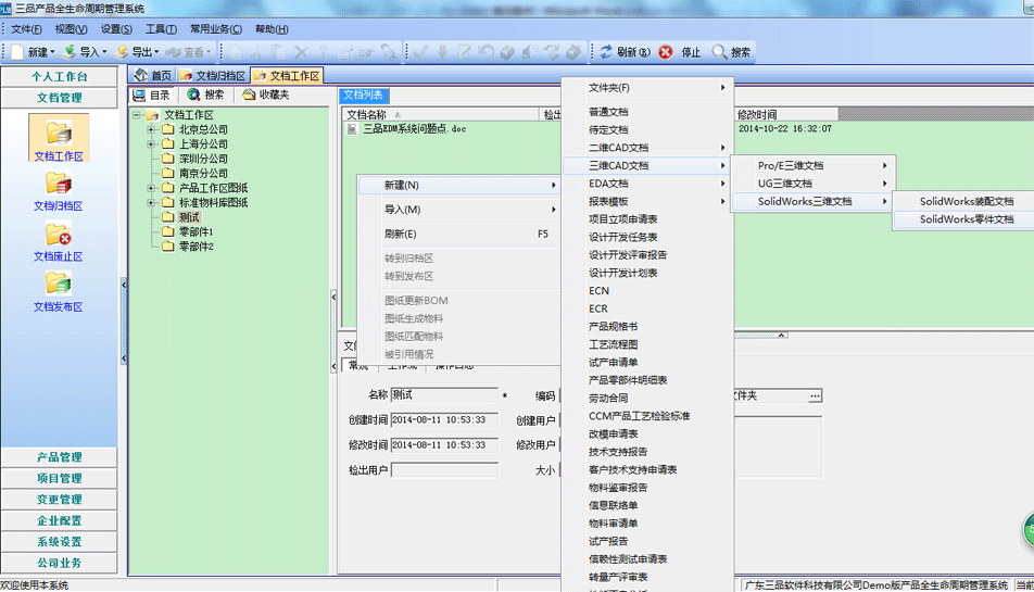 為了提高企業工作的效率,借助PLM系統實現利用企業標準的文檔模板創建各類文檔資料,自動歸檔到該類文檔所指定的存放位置,并且系統對文檔提供版本管理。