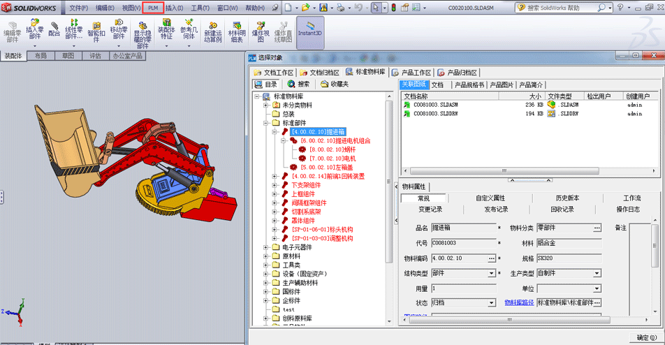 在建立了三品系統標準物料庫之后,傲派技術部門工程師研發設計時,可以通過solidworks登錄三品PLM在線菜單,實現直接借用三品系統標準物料庫中的標準件物料,分布清晰且排列規范的標準件庫,可快速找到所需的標準件,對于提高工程師研發設計出圖率以及所出圖紙的規范化都有很大的提升。