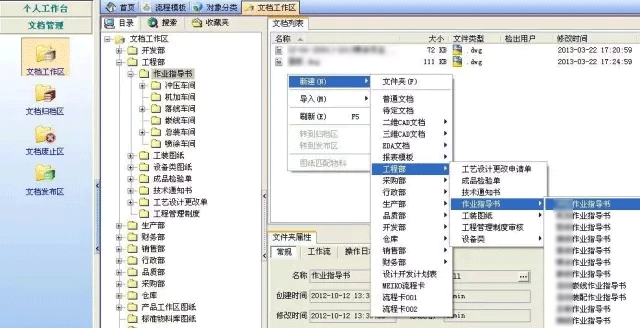 為提高工作的效率,借助PDM系統實現利用企業標準的文檔模板創建各類文檔資料和各部門流程電子流轉審核,自動歸檔到該類文檔所指定的存放位置,并且系統對文檔提供版本管理。