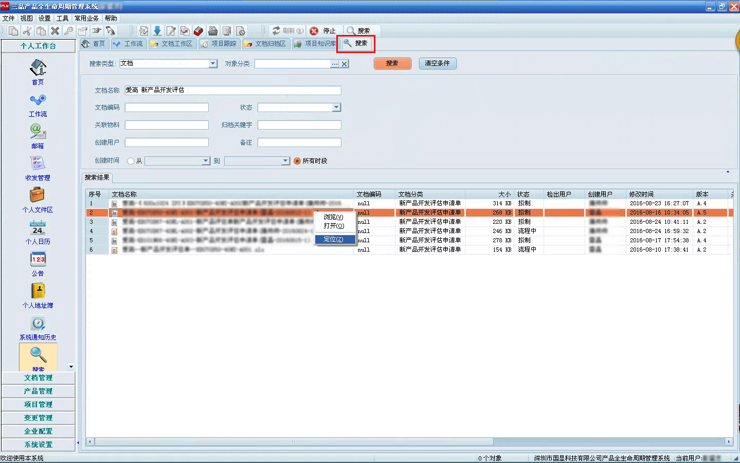 目前,企業各用戶可以按需要在PLM系統中快速查找歷史項目及項目文檔資料,快速借用,業務效率大大提高。