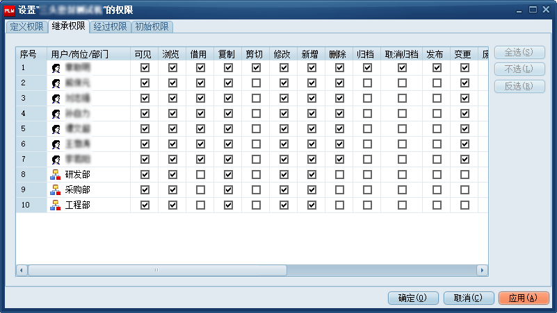 國顯科技在三品PLM系統中建立了一套細致的權限管理機制,規范管理各部門、各用戶在系統中對資料的查閱、復制、修改、刪除、打印、導出等權限,且實時記錄各項操作記錄,便于追溯查看。