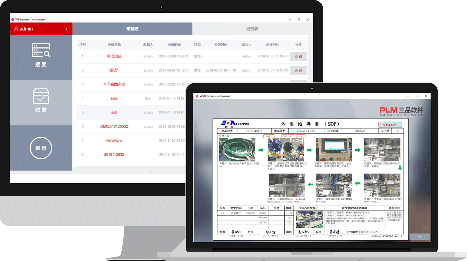 PLM收發(fā)管理模塊與PC端看板信息同步,在PLM系統(tǒng)發(fā)布后可立即在PC端看板里簽收查看發(fā)布內(nèi)容。車間看板收發(fā)管理分為“未簽收”和“已簽收”兩個(gè)模塊。只有簽收后才能查看發(fā)布的內(nèi)容,未簽收的發(fā)布內(nèi)容不能直接查看。選擇已簽收的發(fā)布,點(diǎn)擊查看按鈕可直接在線瀏覽文檔內(nèi)容。