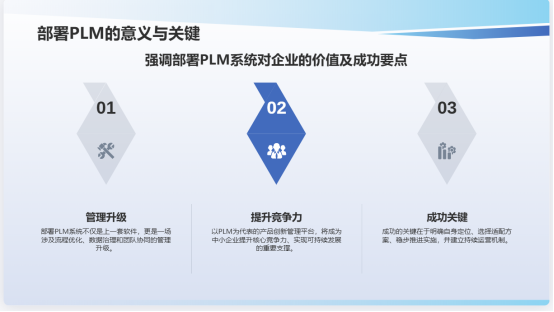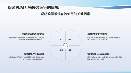 ●高層持續關注與支持:管理層應將PLM使用納入日常管理議程,通過制度引導和考核激勵促進系統應用。