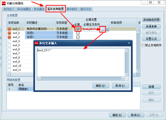 窗體表單明細(xì)表有條件必填字段,設(shè)置方法與主表有條件必填字段設(shè)置方法類似。