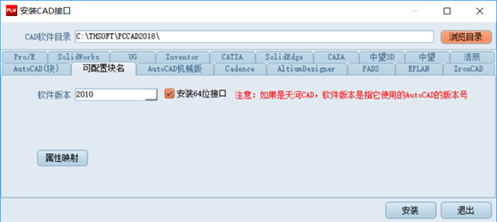 選擇天河CAD的安裝目錄、軟件版本等,點(diǎn) “安裝”完成接口的安裝。