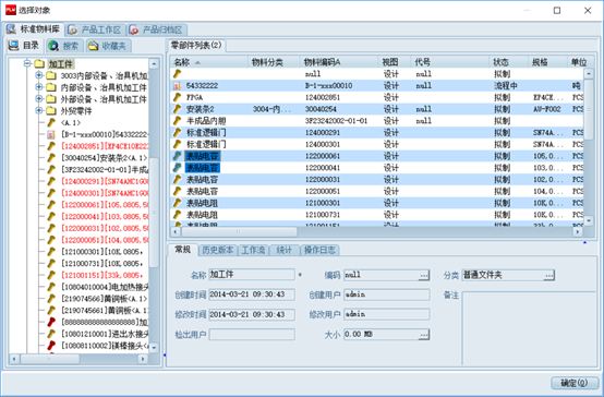 點(diǎn)擊“添加物料”從PDM中選擇物料添加到此明細(xì)表中: