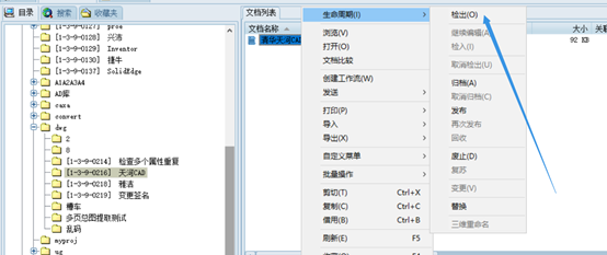 打開(kāi)文檔工作區(qū),選擇一個(gè)天河CAD圖紙文件,右鍵—生命周期--檢出
