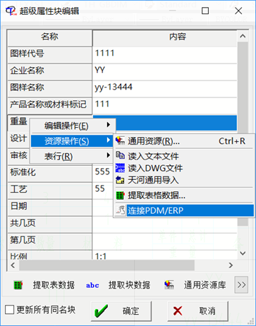 選中所有行,選擇資源操作—“連接PDM/ERP”: