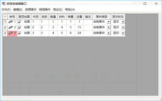 在天河CAD中,編輯明細(xì)欄: