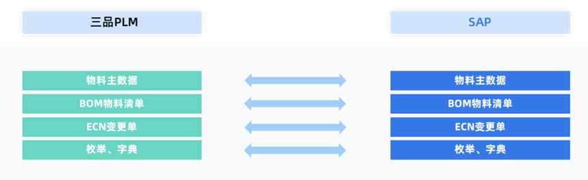 三品PLM系統、SAP ERP系統的雙向集成的功能主要如下: