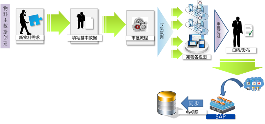實現企業新物料的申請、審批承認后,通過三品PLM傳輸到SAP ERP物料表中,從而作為ERP中可信的、合規的物料信息;
