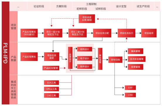 三品PLM系統以IPD(集成產品開發)方法論為基石,構建覆蓋產品全生命周期的數字化管理平臺,實現研發效率、質量與協同能力的全面升級。