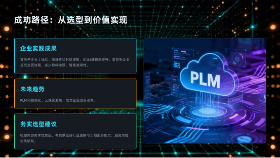 展望未來,隨著云計算、人工智能等技術的融合,PLM系統正朝著更加智能化、云端化和服務化的方向發展。對于珠三角中小企業而言,擁抱PLM已不是趕時髦,而是夯實管理基礎、激發創新活力的必然選擇。關鍵在于,以務實的態度,避開選型路上的那些“坑”,選擇一條與自身規模、行業特性和發展階段相匹配的數字化轉型路徑。